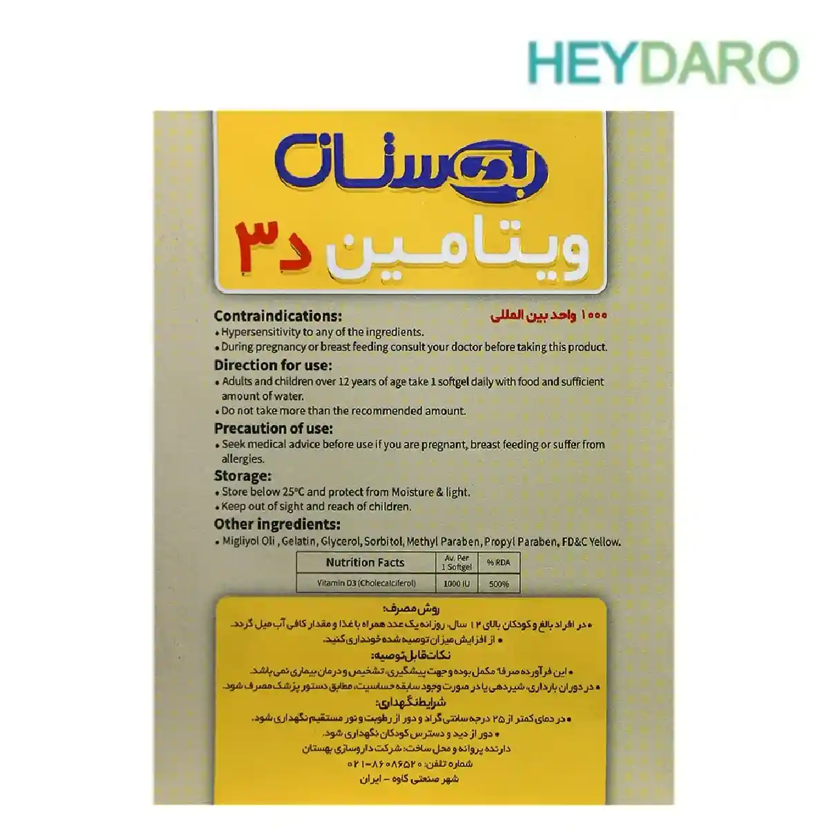 ویتامین د3 1000 واحد بهستان 60 عددی