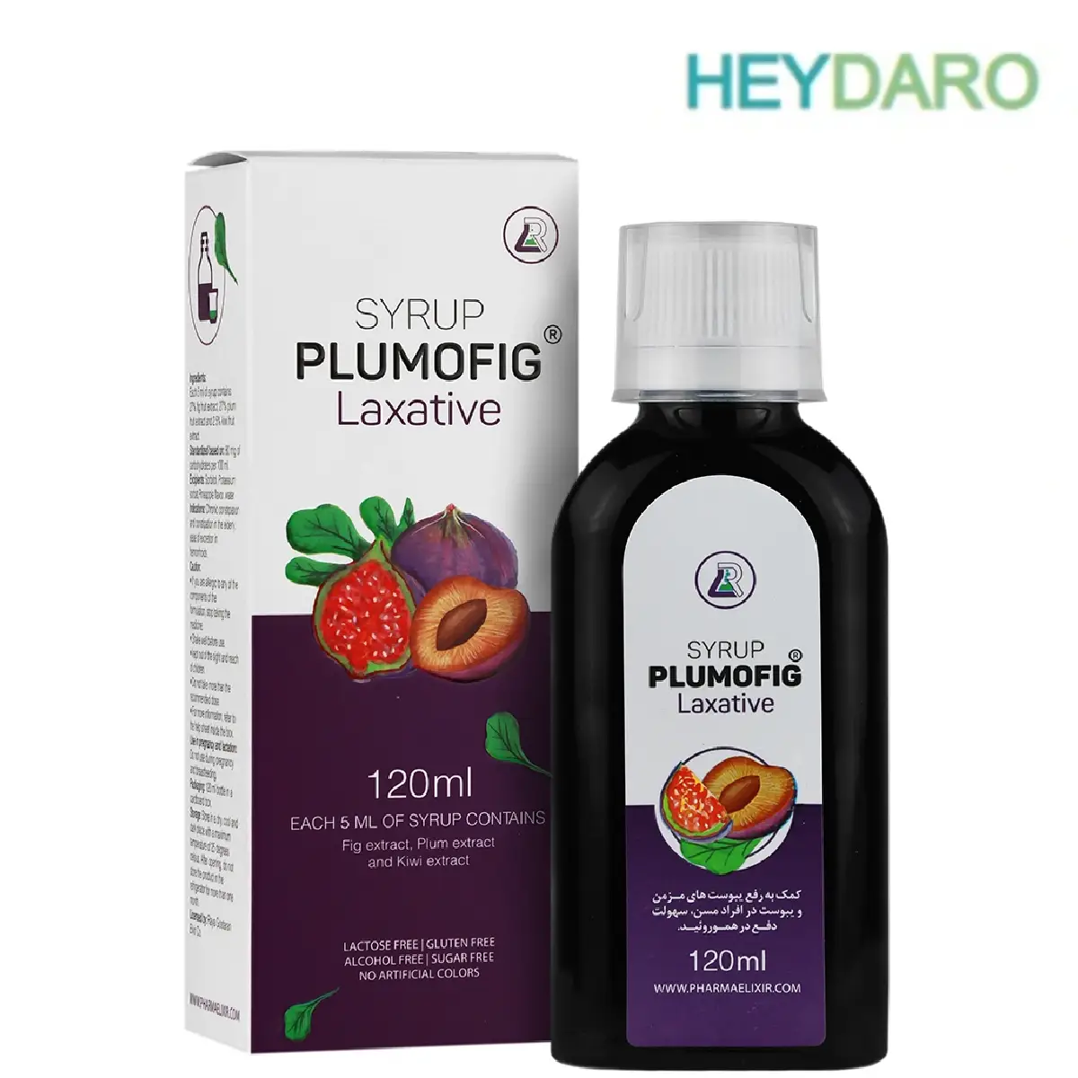 • شربت پلاموفیگ، ملین گیاهی با طعم میوه‌ای حاوی عصاره انجیر، آلو و کیوی