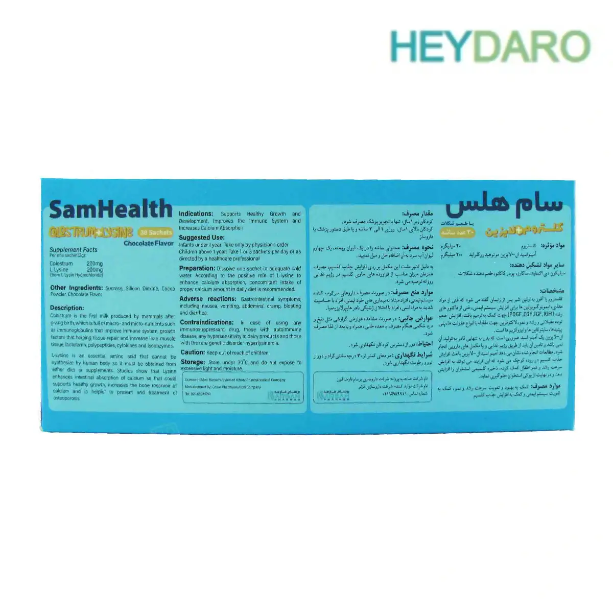 • پودر کلستروم سام هلس + لایزین برسام فارمد حاوی 30 عدد ساشه با طعم شکلات